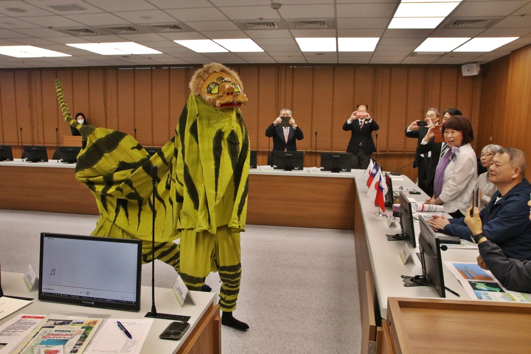 拜會過程中,加美町代表團成員並當場表演被宮城縣指定為無形民俗文化財的傳統「火伏虎舞」,同時逐一為與會的首長、貴賓們賜福、祈求平安。石山町長也藉此邀請黃敏惠市長及市府團隊明年4月29日能參與加美町的傳統盛典「火伏虎舞祭」,共同體驗當地文化魅力。