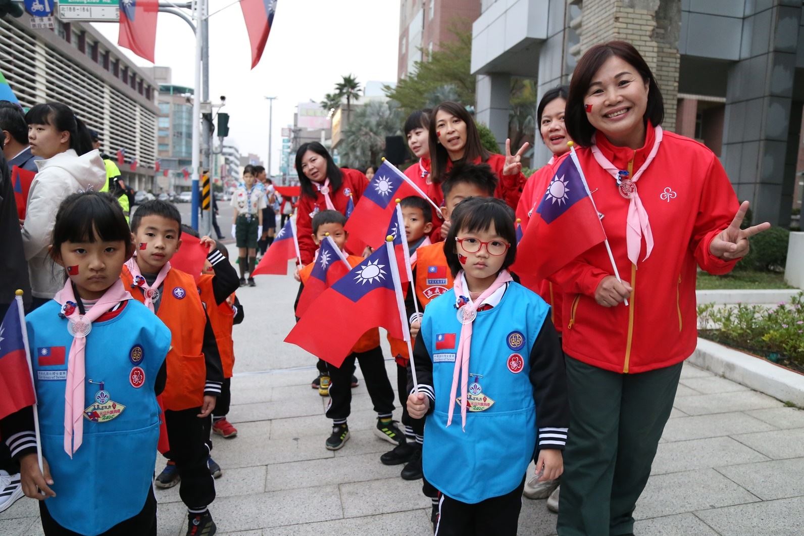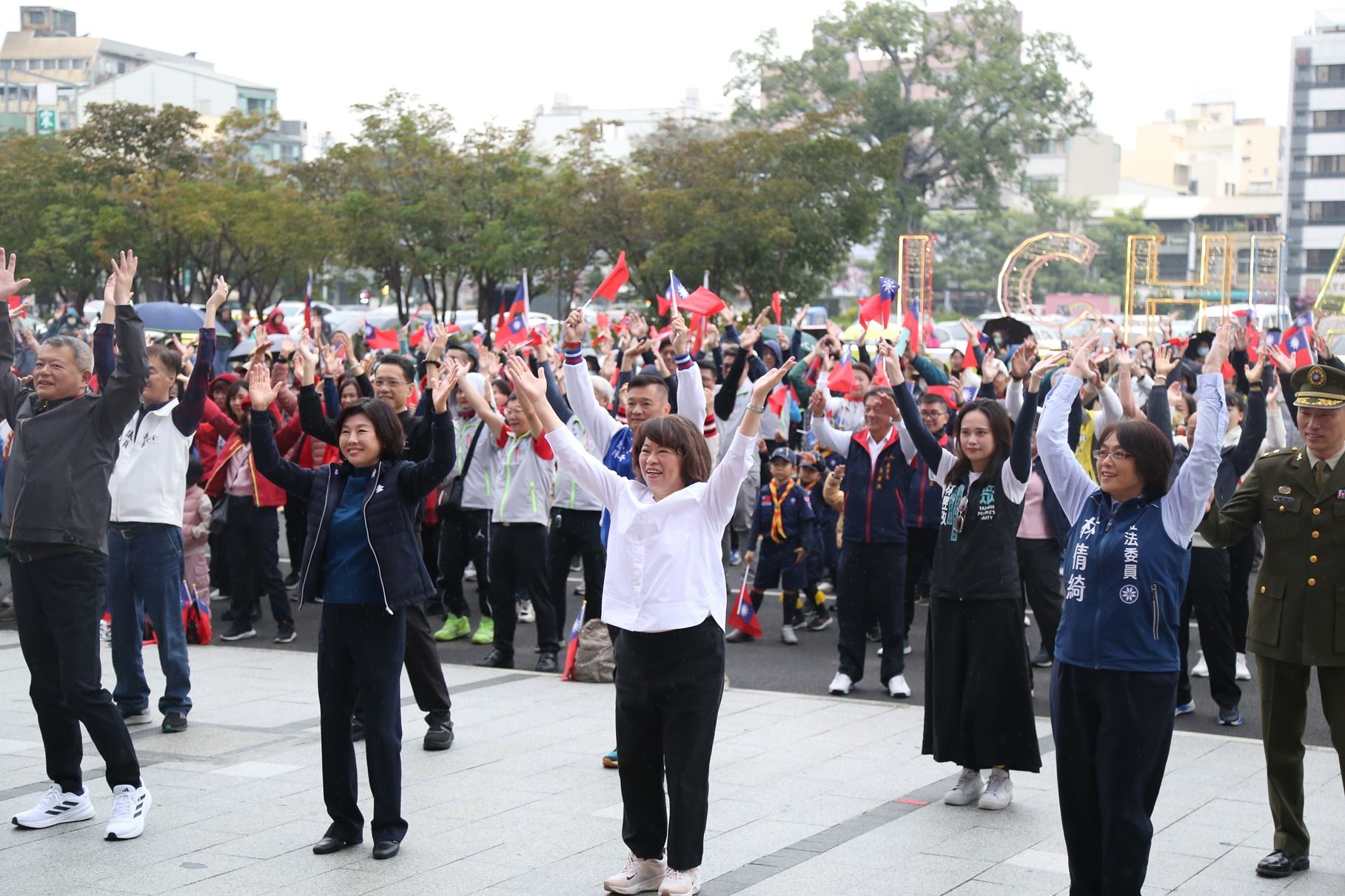 嘉義市政府今(1)日上午7時,在市府前廣場舉行114年元旦升旗活動。由嘉義市幼獅複式童軍團、常民複式童軍團擔任護旗、升旗手,另嘉義市客家文化協會、輔仁中學原住民學生、嘉義市新住民朋友與童軍等,一同領唱國歌,展現嘉義市多元文化融合、凝聚族群向心力與國家認同感。嘉義市長黃敏惠市長與市府團隊、嘉義市議會陳姿妏議長等各界貴賓,以及熱情民眾共襄盛舉,現場旗海飄揚,用滿滿活力,表達熱愛國家情操,共同迎接2025年!