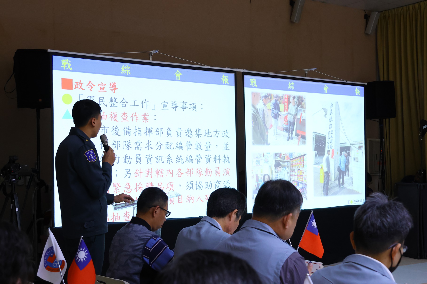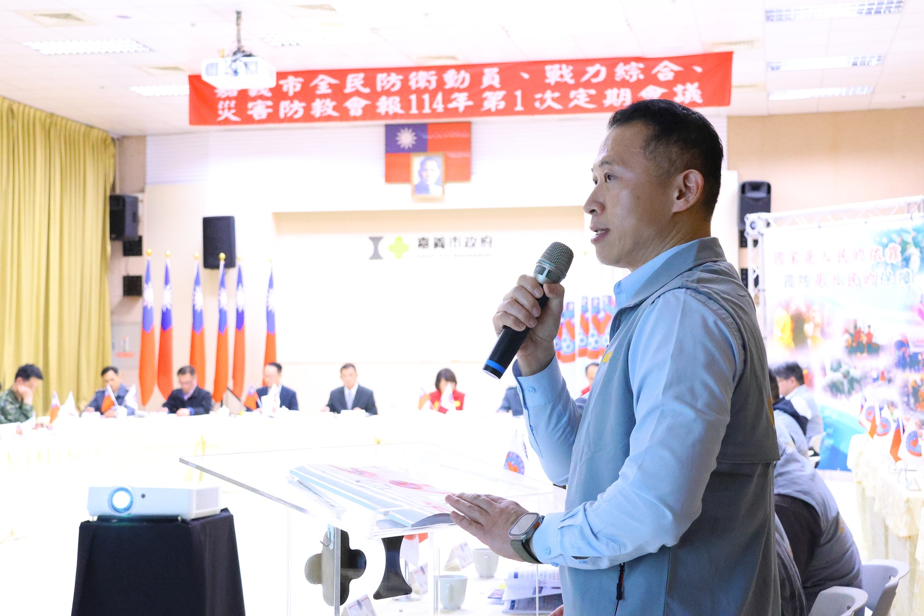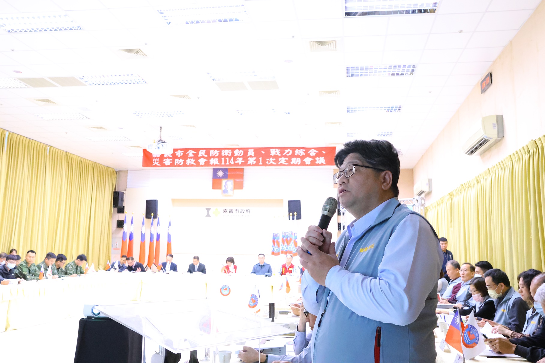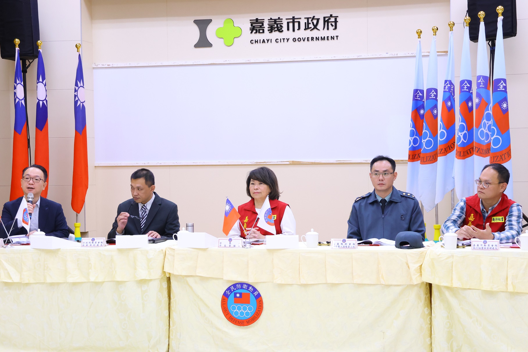 今(31)日,於嘉義市政府召開114年度全民防衛動員準備業務、全民戰力綜合協調及災害防救三合一會報第1次定期會議,嘉義市長黃敏惠率領市府團隊參與,行政院全民防衛動員準備業務會報、行政院災害防救辦公室、臺閩全民戰力綜合協調會報、中部地區全民戰力綜合協調會報、第五作戰區指揮部等5個中央單位特別參與視導。