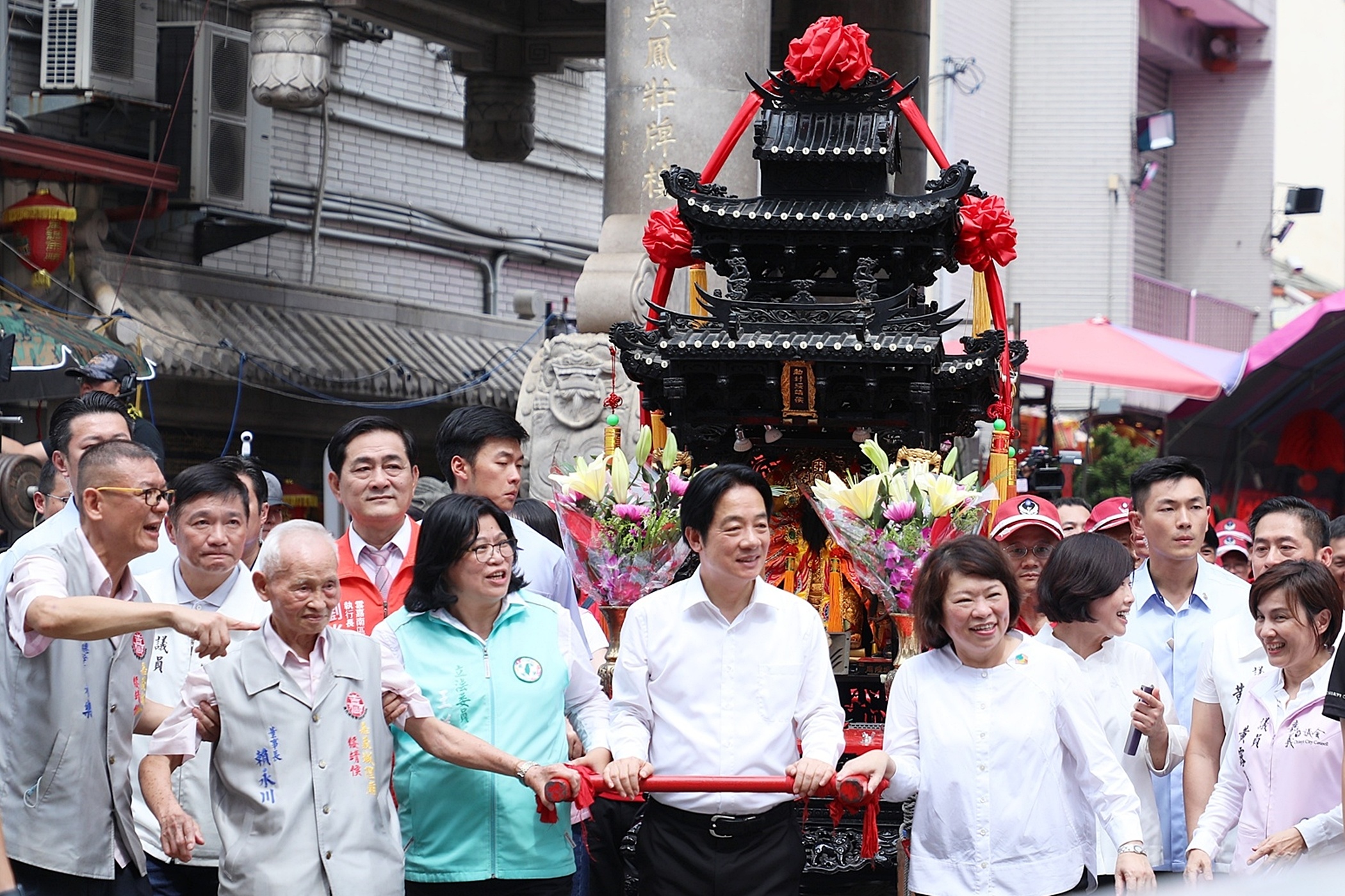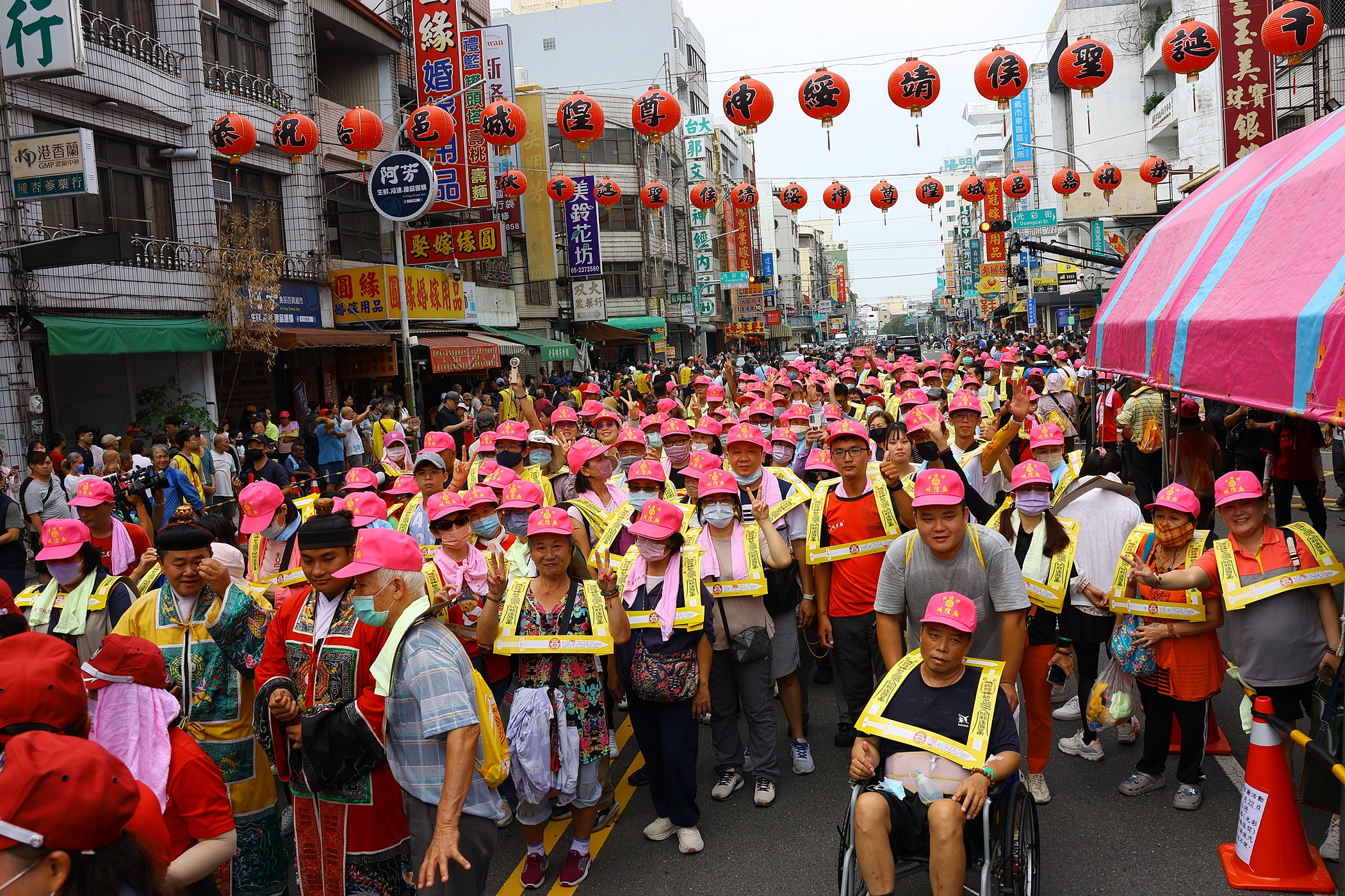 國定古蹟嘉義城隍廟每年農曆八月初一「城隍夜巡 夯枷解厄」為歷史悠久且名揚國際的祈福遶境盛事,今(22)日中午,盛大遶境隊伍由城隍廟埕出發,嘉義市長黃敏惠與總統賴清德、嘉義城隍廟董事長賴永川等貴賓親扶神轎,遵循古禮恭請城隍聖駕遶境祈福,保佑市民平安。