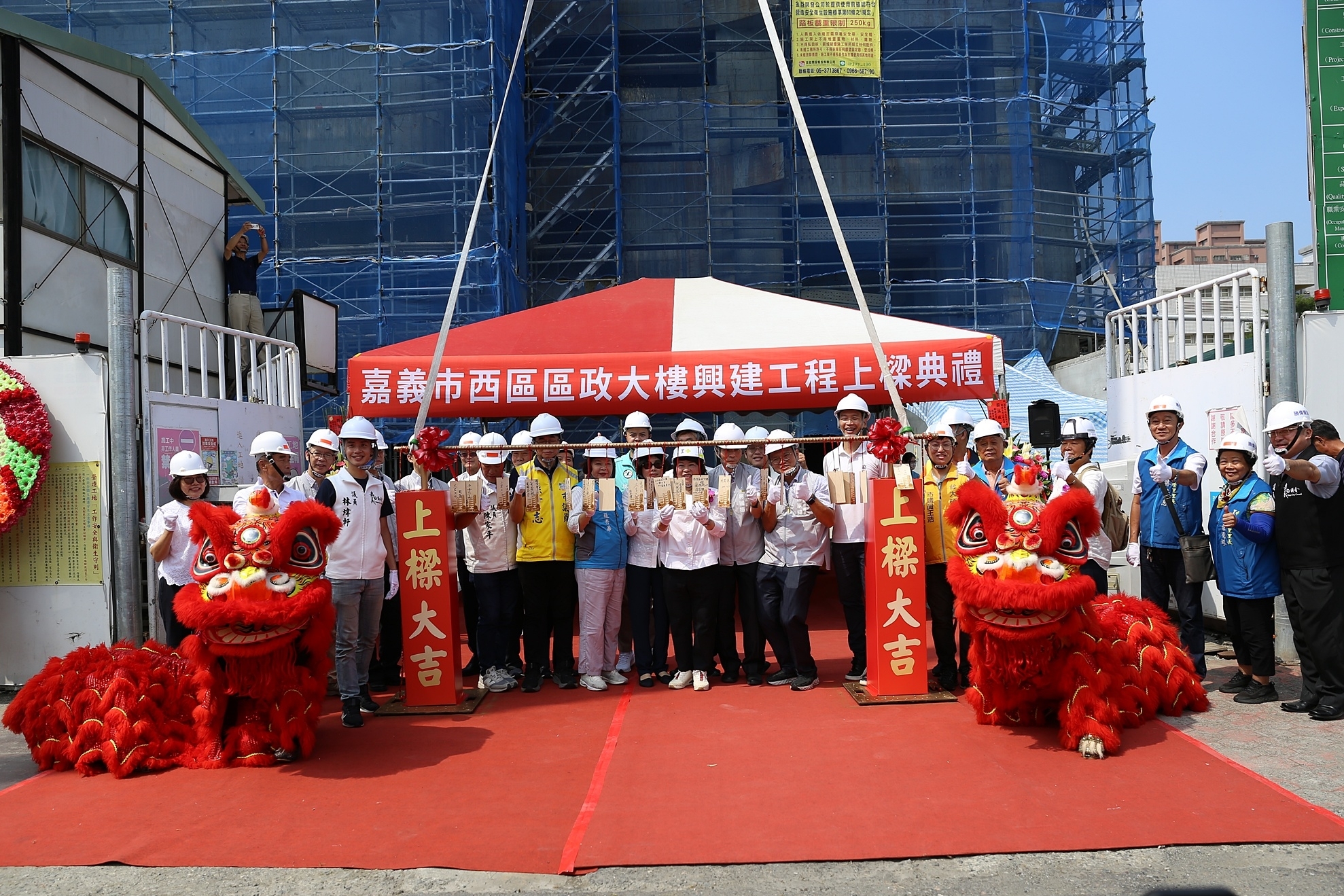嘉義市政府為提高公共服務品質,在多年規劃、克服工料上漲、五度流標等困難,推動西區區政大樓興建工程於去(113)年3月進行。開工後,工程整體進度穩定超前,今(3)日,在嘉義市長黃敏惠與多位貴賓共同見證上,在友愛路停車場旁基地舉行上樑典禮,共同見證這座結合西區公所、戶政事務所以及西區各聯合里辦公處,且具完善托育資源、便利民眾洽公的嶄新大樓新生。