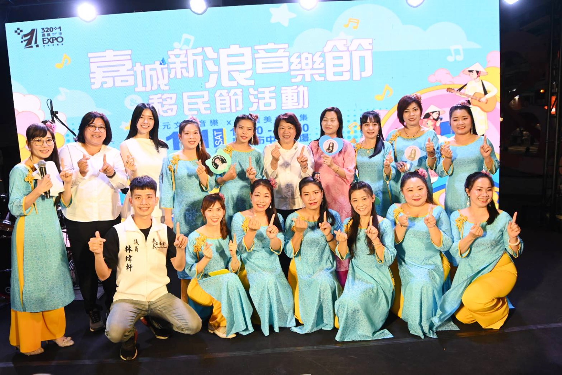 「2025嘉城新浪音樂節暨移民節活動」,今(1)日下午在嘉義市中央廣場熱鬧開唱,現場人潮湧動、氣氛熱烈。黃敏惠市長率市府團隊一同與市民朋友、新住民家庭及移工同歡。今年活動邁入第三年,嘉義市政府為擴大推動新住民及新二代培力、發展族群認同,由社會處與民政處共同主辦,將規模與卡司全面升級,邀請印尼知名歌手Vicky Shu、越南人氣唱跳歌手黃輝雄Gemini Hùng Huỳnh,以及台菲新二代歌手KC施佳玲輪番演出,跨越國界以音樂唱出嘉義市多元共融、友善共好的城市精神。