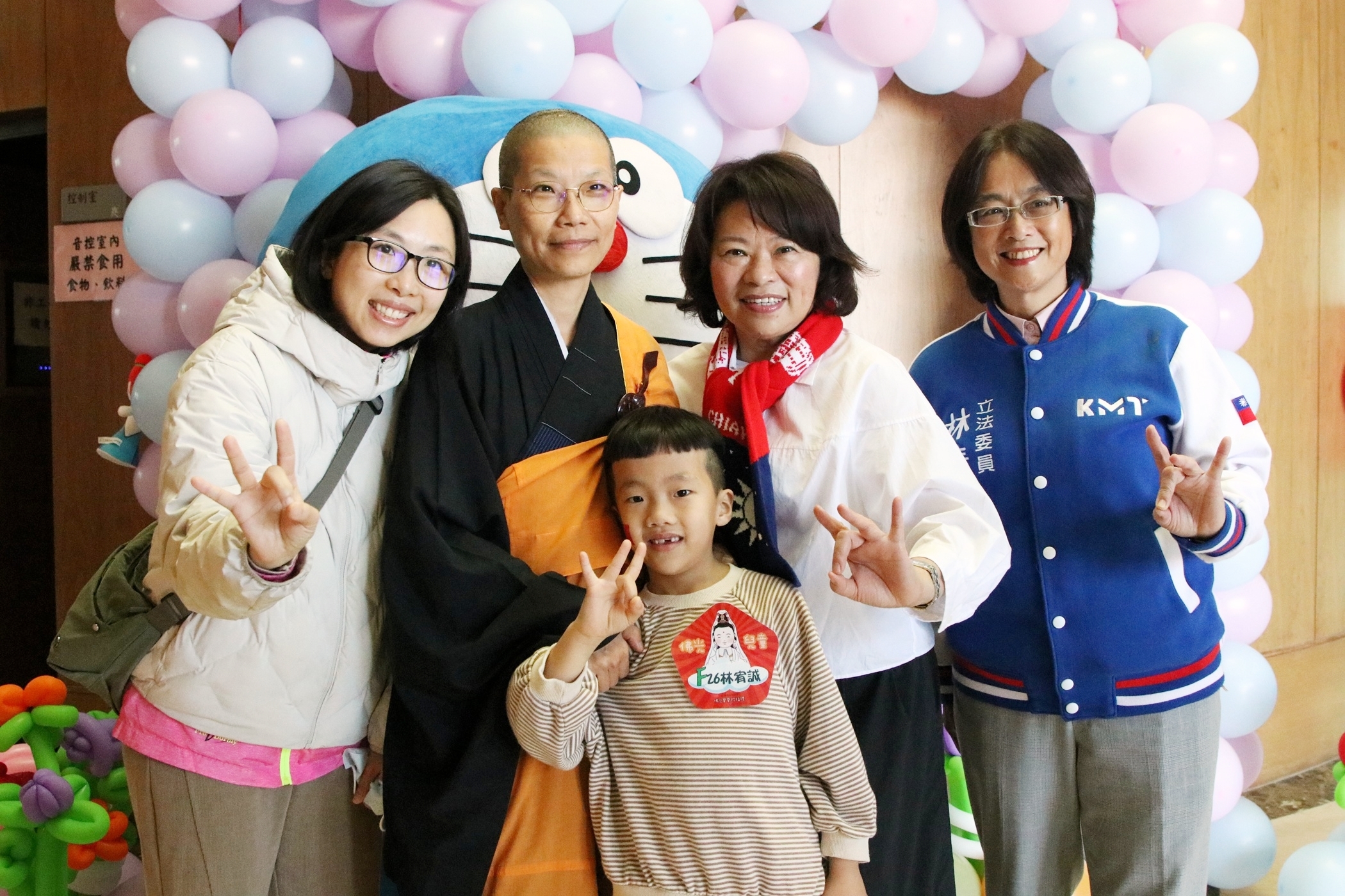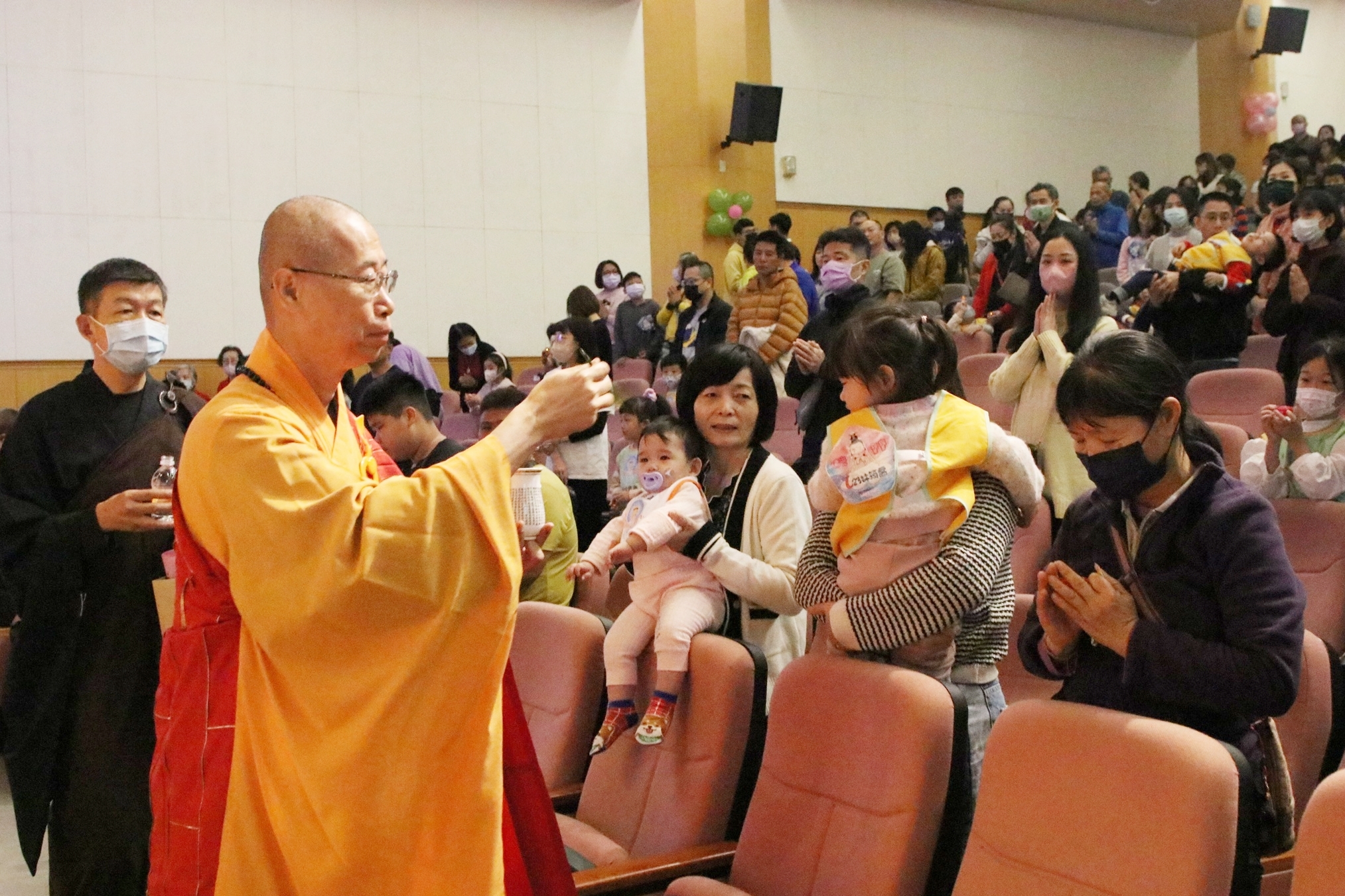 除了參加升旗典禮迎新年外,佛光山圓福寺別出心裁,辦理「佛光寶寶祝福禮暨佛光兒童回娘家活動」親子活動,除了為寶貝祝福祈願,也是親子共樂的特別活動,吸引不少家長帶著孩子踴躍參與,非常有意義,黃敏惠市長也特地出席和現場親子加油打氣。