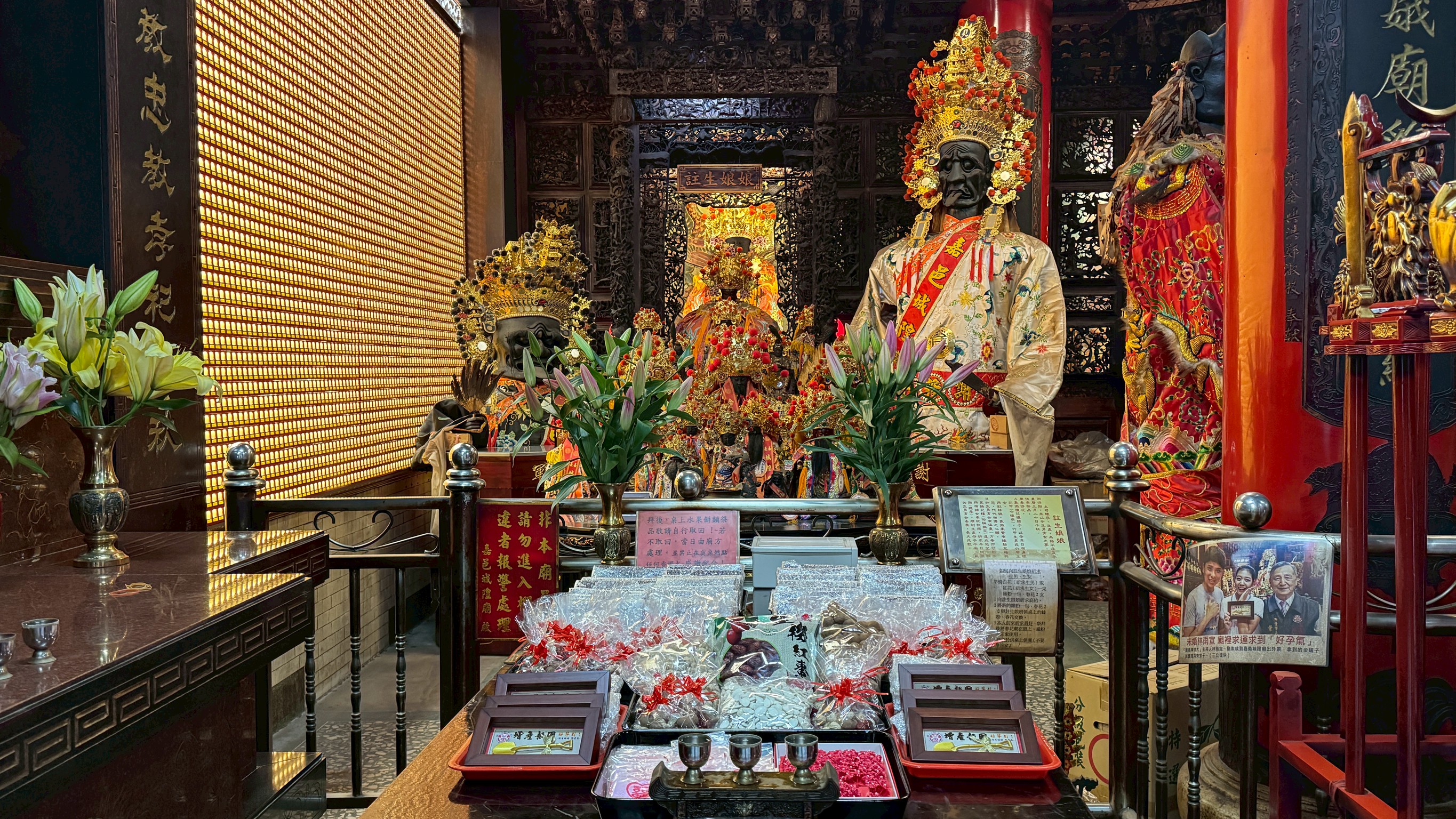 本次「金鏟子好孕祈福」儀式,由民政處處長林家緯代表市長出席,並與嘉義城隍廟楊嘉南董事長及董監事等人共同參與。儀式中,金鏟子事先安奉於註生娘娘殿前,並準備鮮花、水果、緣粉(象徵緣份深厚)、春仔花(象徵吉祥),以及紅棗、花生、桂圓、瓜子等寓意「早生貴子」的供品,透過上香祈福與過香爐儀式,圓滿完成祈福流程。
