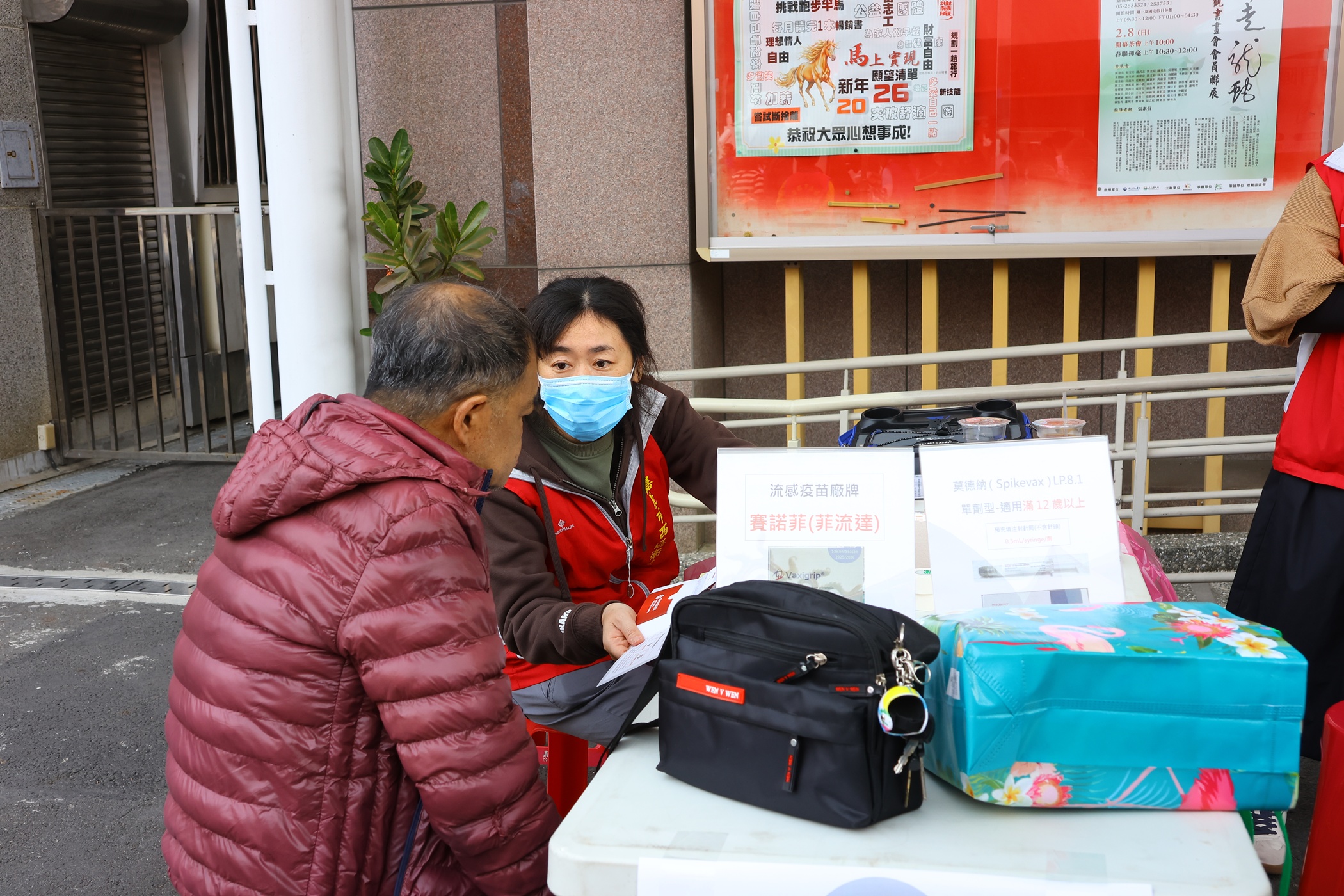 嘉義市長黃敏惠今(31)日上午,出席財團法人九華山地藏庵所舉辦冬令救濟活動,感謝九華山地藏庵發揮慈悲大愛精神,幫助弱勢民眾度過一個溫馨的農曆新年,也盼藉活動喚起社會對弱勢族群更多的關注與關懷。嘉義市政府衛生局配合冬令救濟活動 於九華山地藏庵廟前廣場設站,提供帶狀疱疹、流感和新冠疫苗接種服務,關懷有需要的族群。